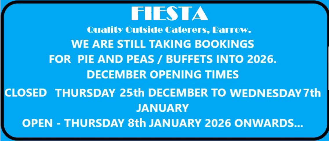 DUE TO A MASSIVE CHANGE IN CIRCUMSTANCES, WE WILL BE CARRYING ON AT FIESTA CATERING INTO 2026.